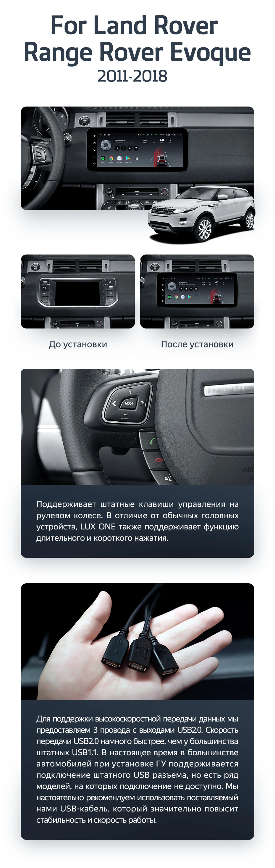 Готовый установочный комплект для магнитолы Land Rover Range Rover Evoque (2011-2018) Тип-A 12,3 дюймов в штатное место, включает переходную рамку и проводку.