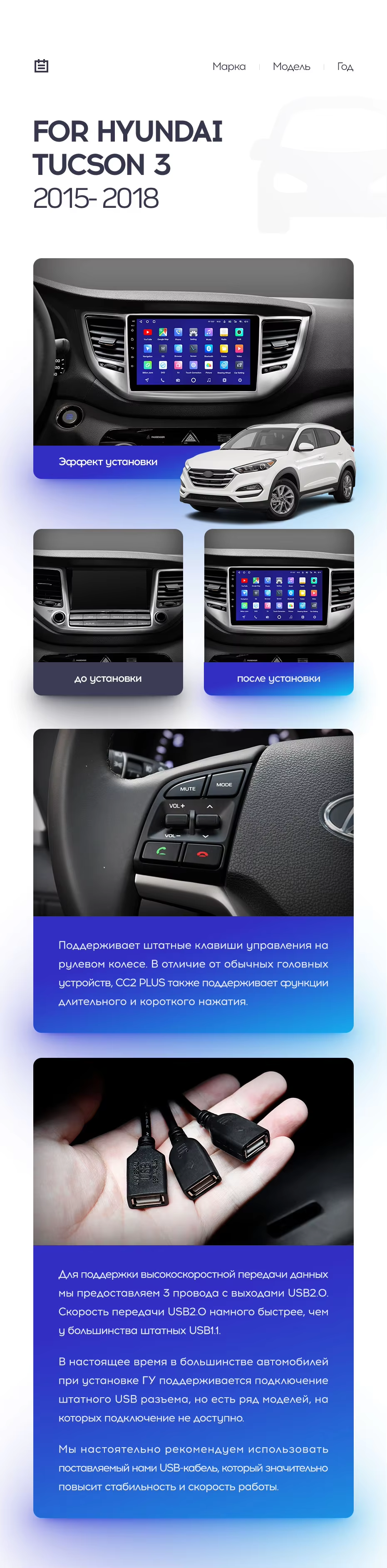 Штатная магнитола Teyes CC2 Plus 4/32 Hyundai Tucson 3 (2015-2018) Тип-A - купить всего за 33 800 руб. в интернет-магазине в Ижевске Teyes.com.ru. ✓ Самый лучший выбор мультимедиа ✓ Лучшая замена штатному ГУ ✓ Тел. +7 (800) 775-31-74
