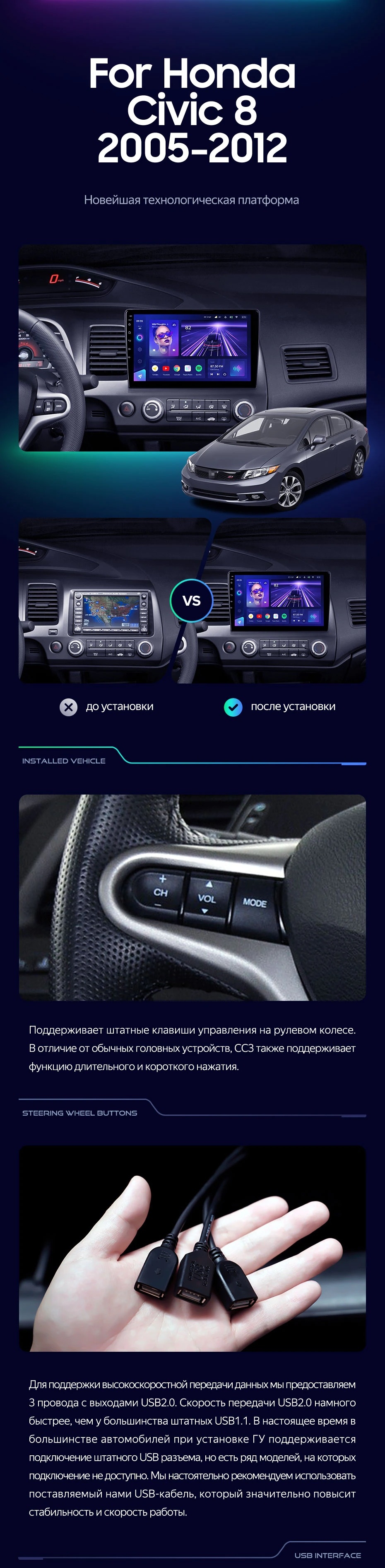 Штатная магнитола Teyes CC3 2K 4/64 Honda Civic Hatchback (2006-2012) - купить всего за 46 400 руб. в интернет-магазине в Ижевске Teyes.com.ru. ✓ Самый лучший выбор мультимедиа ✓ Лучшая замена штатному ГУ ✓ Тел. +7 (800) 775-31-74