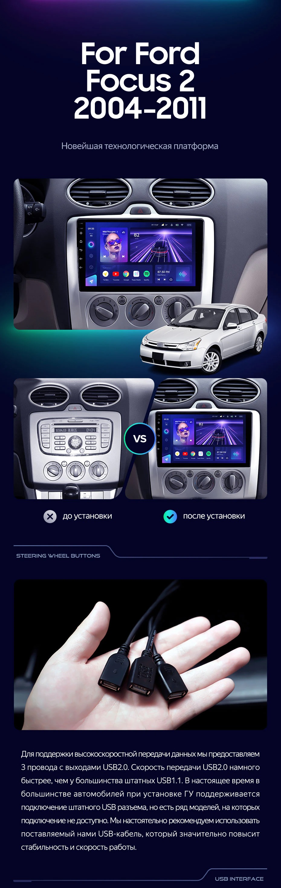 Штатная магнитола Teyes CC3 4/32 Ford Focus 2 Mk 2 (2004-2011) F2 - купить всего за 32 120 руб. в интернет-магазине в Ижевске Teyes.com.ru. ✓ Самый лучший выбор мультимедиа ✓ Лучшая замена штатному ГУ ✓ Тел. +7 (800) 775-31-74