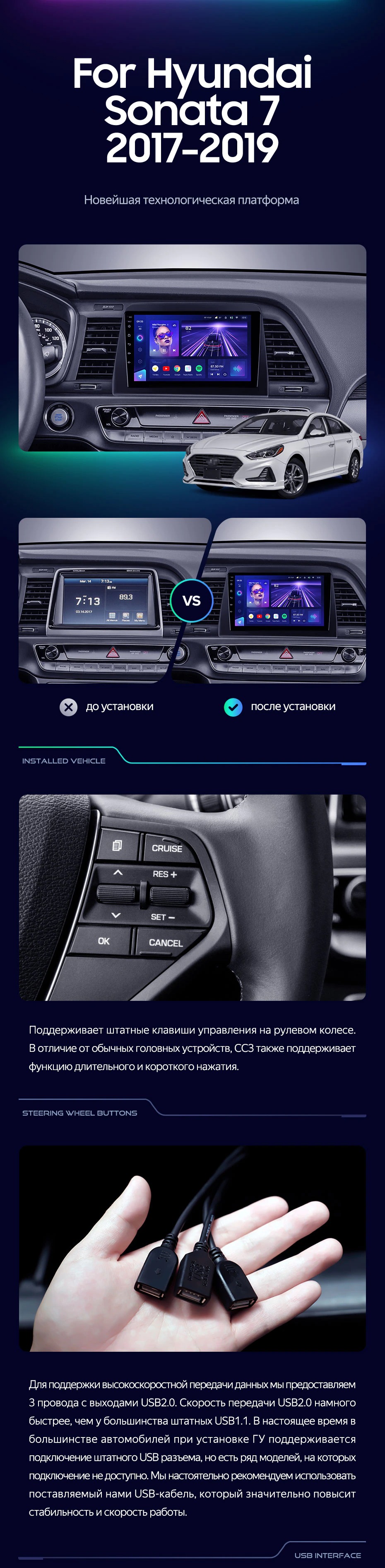 Штатная магнитола Teyes CC3 4/32 Hyundai Sonata 7 LF (2017-2019) - купить всего за 33 650 руб. в интернет-магазине в Ижевске Teyes.com.ru. ✓ Самый лучший выбор мультимедиа ✓ Лучшая замена штатному ГУ ✓ Тел. +7 (800) 775-31-74
