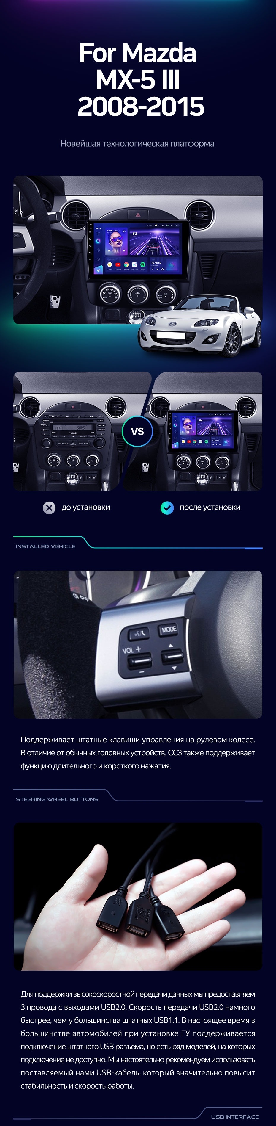 Штатная магнитола Teyes CC3 4/32 Mazda MX-5 (2008-2015) - купить всего за 34 230 руб. в интернет-магазине в Ижевске Teyes.com.ru. ✓ Самый лучший выбор мультимедиа ✓ Лучшая замена штатному ГУ ✓ Тел. +7 (800) 775-31-74