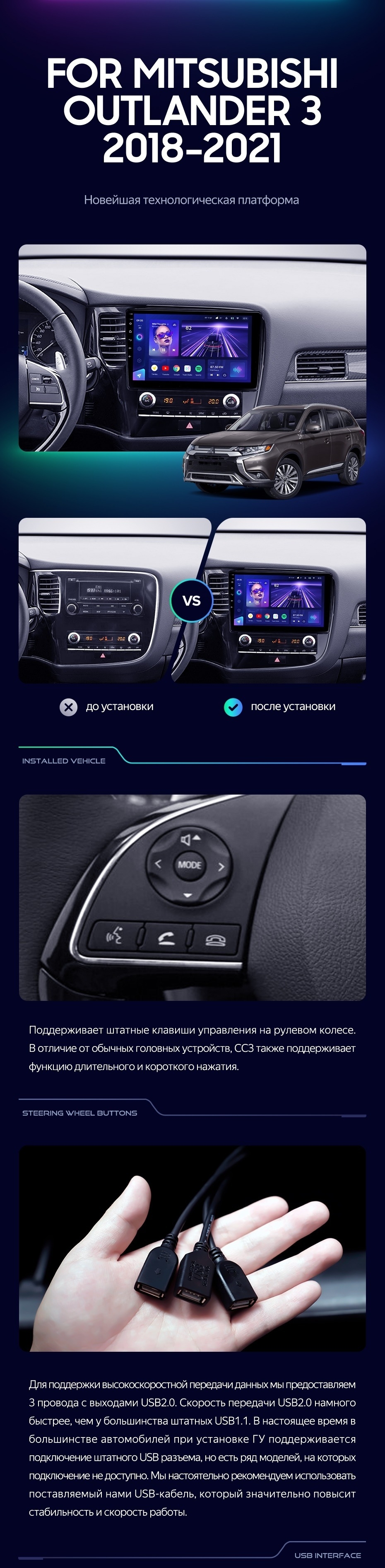 Штатная магнитола Teyes CC3 4/32 Mitsubishi Outlander 3 (2018-2021) - купить всего за 33 830 руб. в интернет-магазине в Ижевске Teyes.com.ru. ✓ Самый лучший выбор мультимедиа ✓ Лучшая замена штатному ГУ ✓ Тел. +7 (800) 775-31-74