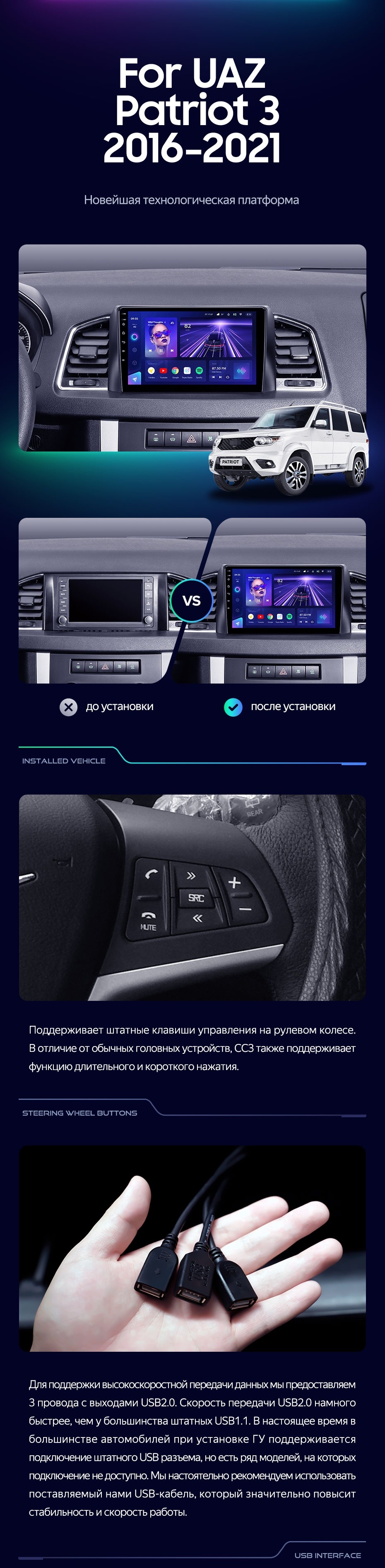 Штатная магнитола Teyes CC3 4/32 UAZ Patriot 3 (2016-2021) F1 - купить всего за 32 270 руб. в интернет-магазине в Ижевске Teyes.com.ru. ✓ Самый лучший выбор мультимедиа ✓ Лучшая замена штатному ГУ ✓ Тел. +7 (800) 775-31-74