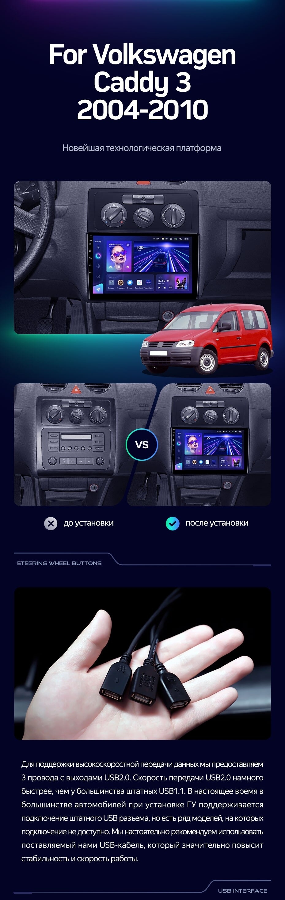 Штатная магнитола Teyes CC3 4/32 Volkswagen Caddy 2K (2004-2010) - купить всего за 34 300 руб. в интернет-магазине в Ижевске Teyes.com.ru. ✓ Самый лучший выбор мультимедиа ✓ Лучшая замена штатному ГУ ✓ Тел. +7 (800) 775-31-74