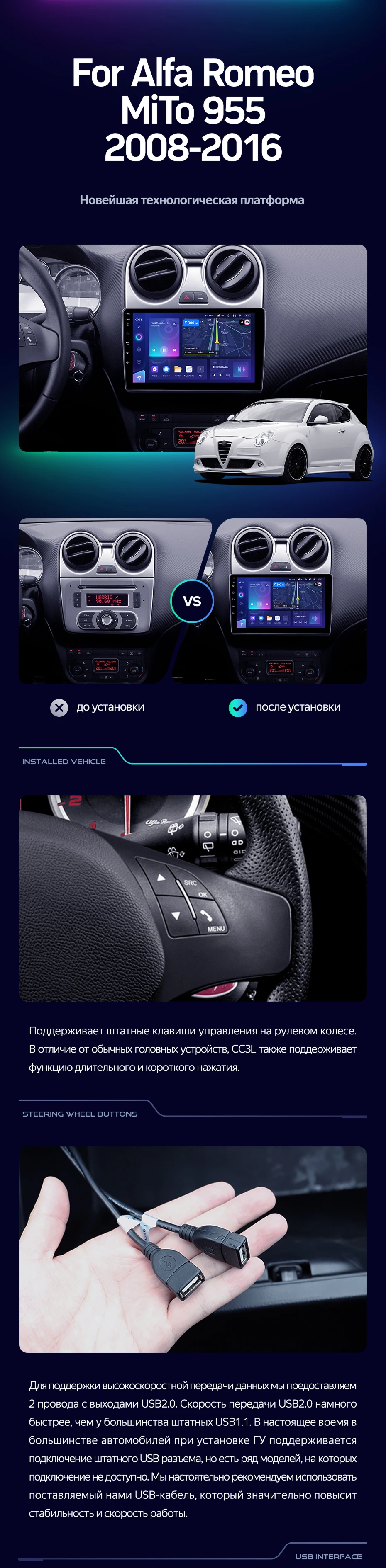Штатная магнитола Teyes CC3 4/32 Alfa Romeo MiTo 955 (2008-2016) - купить всего за 35 330 руб. в интернет-магазине в Ижевске Teyes.com.ru. ✓ Самый лучший выбор мультимедиа ✓ Лучшая замена штатному ГУ ✓ Тел. +7 (800) 775-31-74