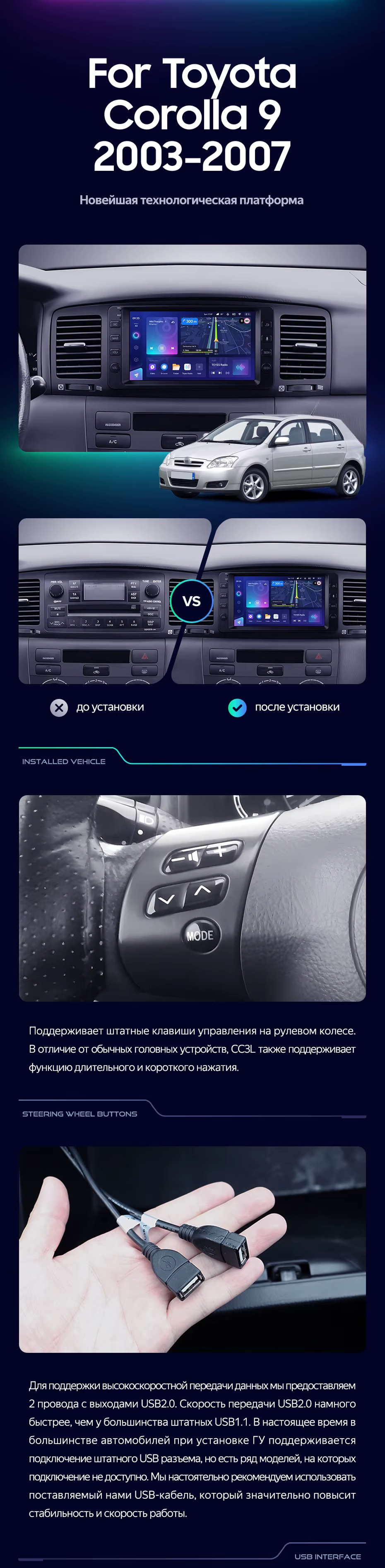 Штатная магнитола Teyes CC3 4/32 Toyota Corolla 9 E120 E130 (2003-2007) 7" - купить всего за 32 500 руб. в интернет-магазине в Ижевске Teyes.com.ru. ✓ Самый лучший выбор мультимедиа ✓ Лучшая замена штатному ГУ ✓ Тел. +7 (800) 775-31-74