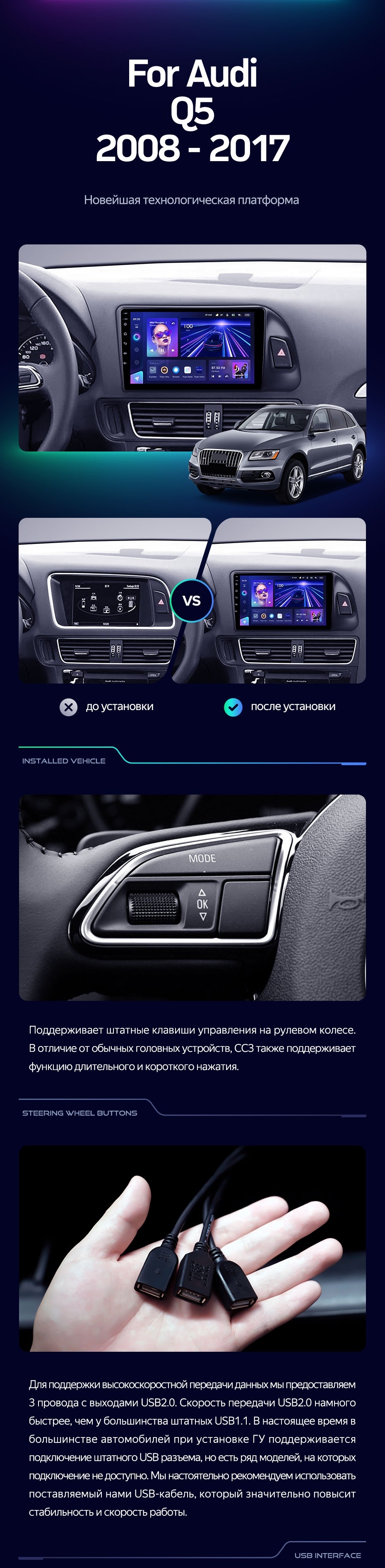 Штатная магнитола Teyes CC3L 4/32 Audi Q5 8R (2008-2017) Тип-A - купить всего за 31 540 руб. в интернет-магазине в Ижевске Teyes.com.ru. ✓ Самый лучший выбор мультимедиа ✓ Лучшая замена штатному ГУ ✓ Тел. +7 (800) 775-31-74