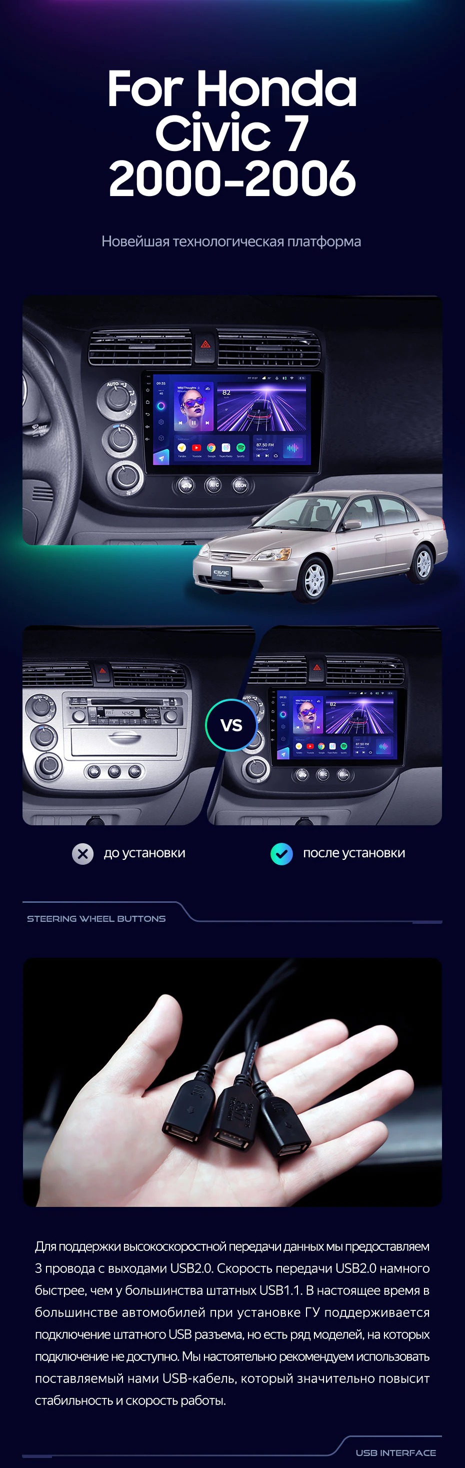 Штатная магнитола Teyes CC3L 4/32 Honda Civic 7 (2000-2006) F1 - купить всего за 28 500 руб. в интернет-магазине в Ижевске Teyes.com.ru. ✓ Самый лучший выбор мультимедиа ✓ Лучшая замена штатному ГУ ✓ Тел. +7 (800) 775-31-74
