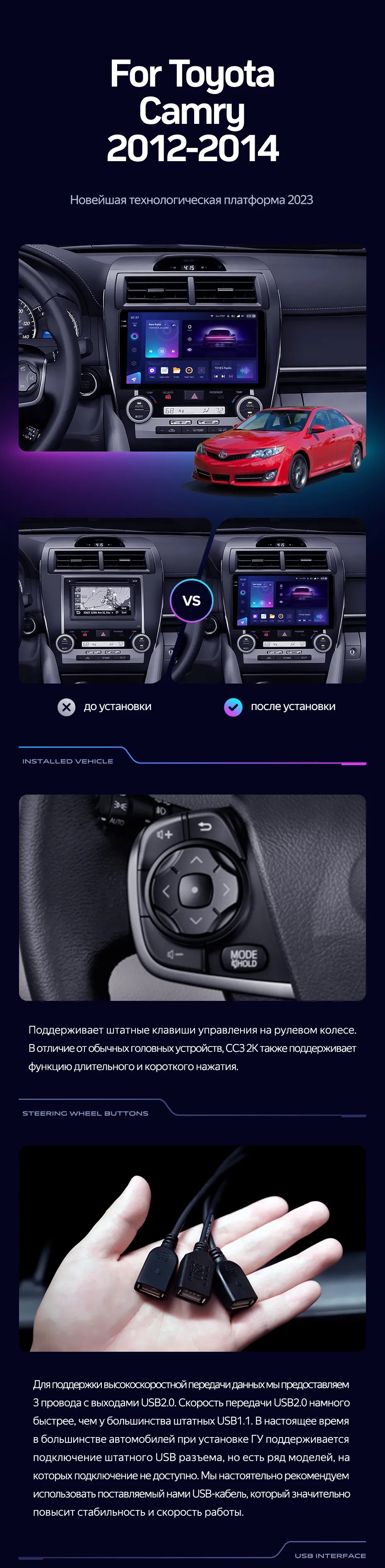 Штатная магнитола Teyes CC3L WiFi 2/32 Toyota Camry 7 XV 50 55 (2012-2014) Америка - купить всего за 17 100 руб. в интернет-магазине в Ижевске Teyes.com.ru. ✓ Самый лучший выбор мультимедиа ✓ Лучшая замена штатному ГУ ✓ Тел. +7 (800) 775-31-74