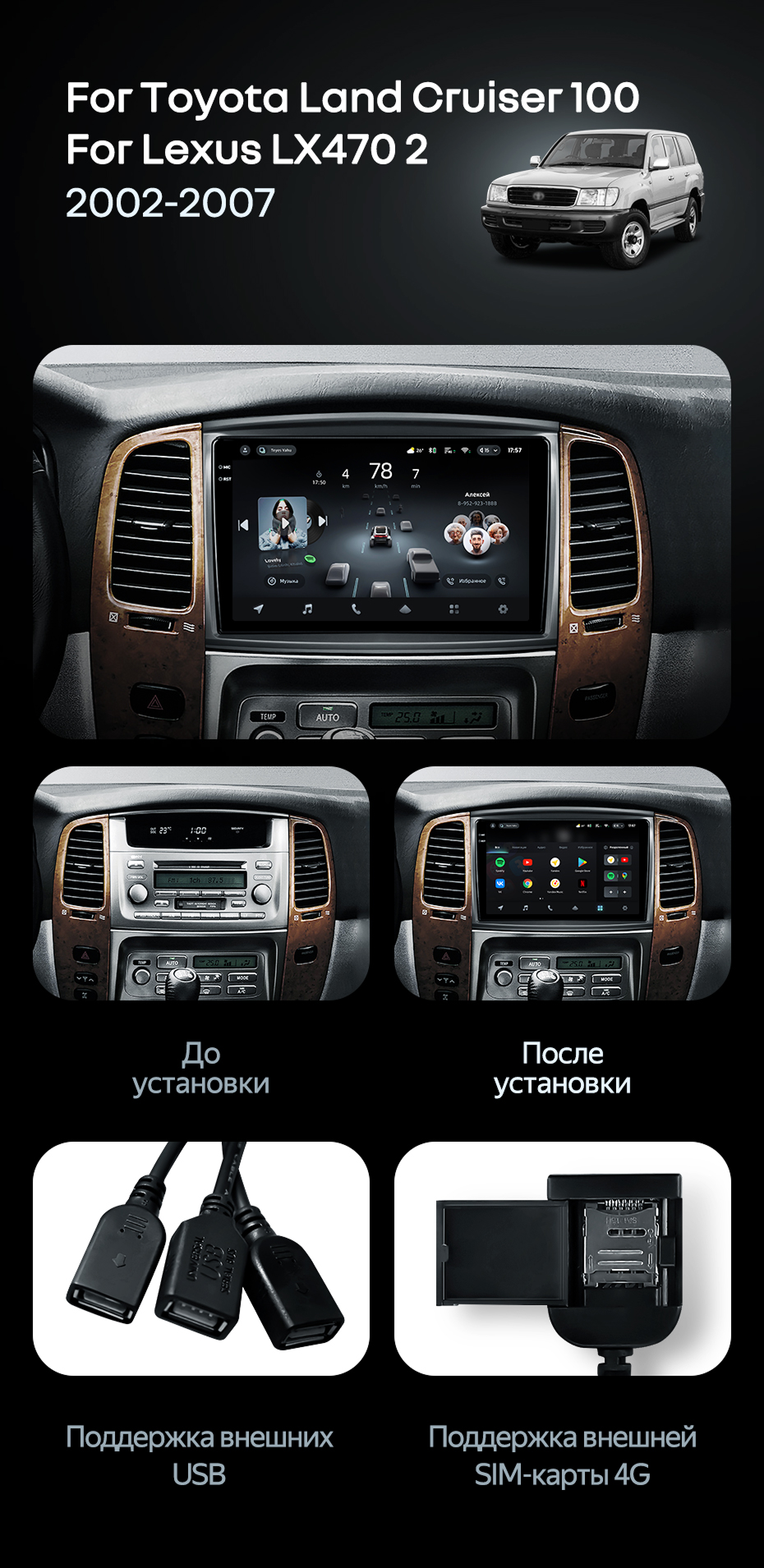 Штатная магнитола Teyes CC4 6/64 Lexus LX470 J100 2 (2002-2007) Тип-C - купить всего за 50 300 руб. в интернет-магазине в Ижевске Teyes.com.ru. ✓ Самый лучший выбор мультимедиа ✓ Лучшая замена штатному ГУ ✓ Тел. +7 (800) 775-31-74