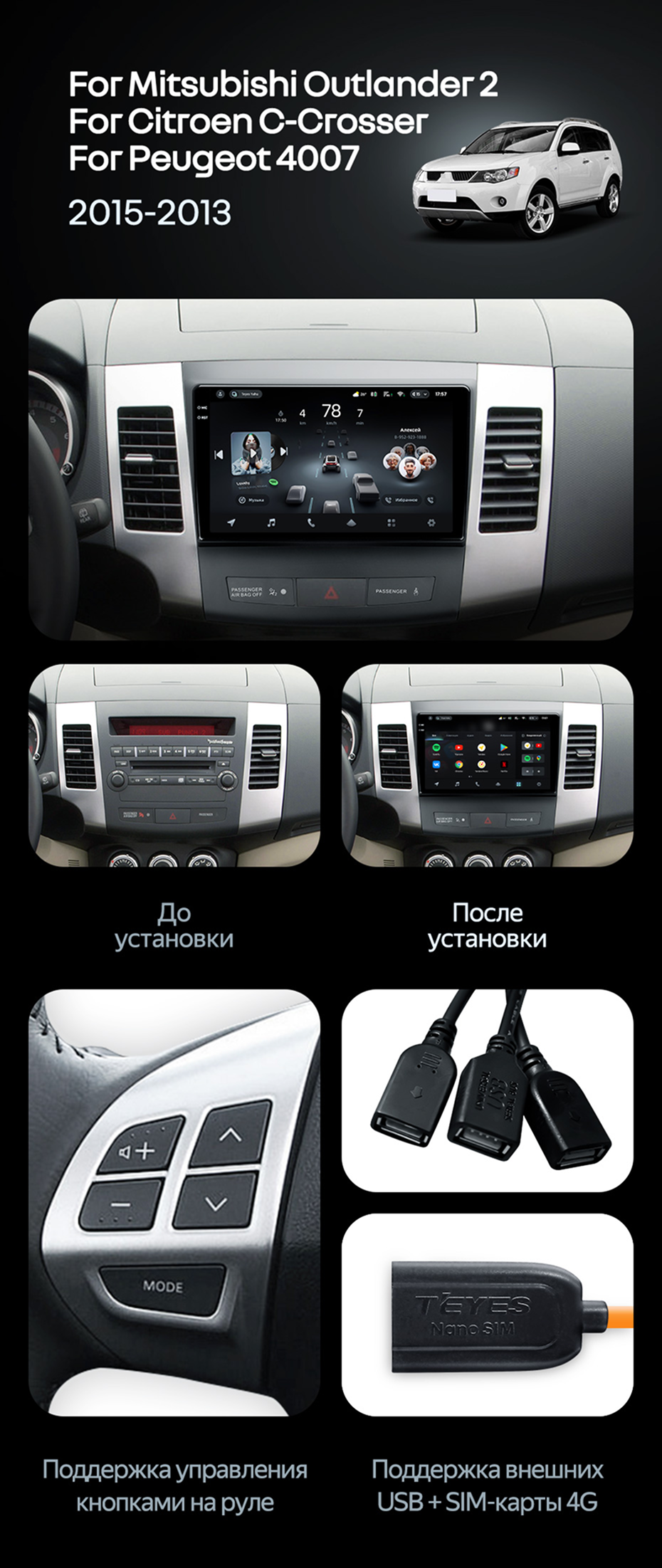 Штатная магнитола Teyes CC4 6/64 Mitsubishi Outlander 2 (2005-2011) Тип-B - купить всего за 44 840 руб. в интернет-магазине в Ижевске Teyes.com.ru. ✓ Самый лучший выбор мультимедиа ✓ Лучшая замена штатному ГУ ✓ Тел. +7 (800) 775-31-74