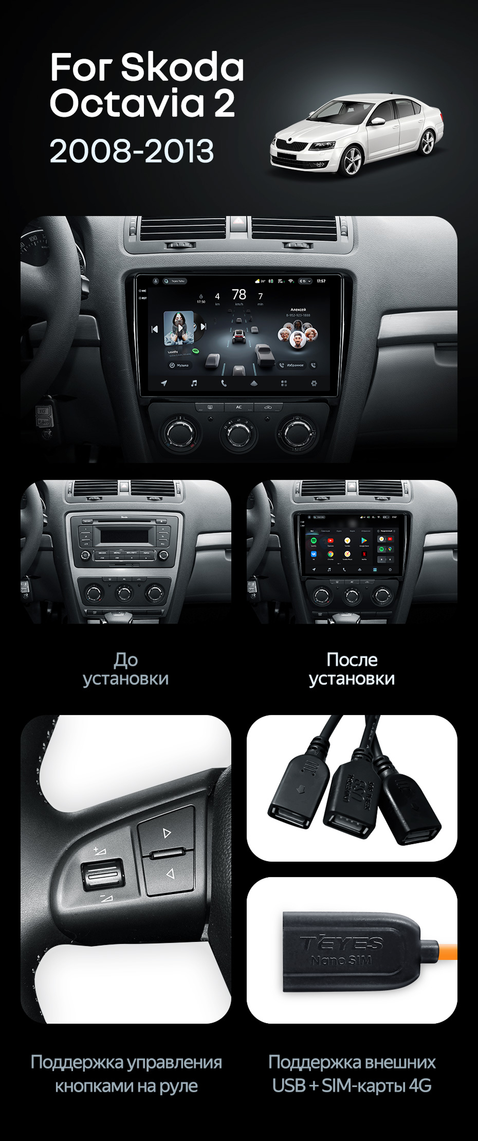 Штатная магнитола Teyes CC4 6/64 Skoda Octavia 2 A5 (2008-2013) - купить всего за 48 070 руб. в интернет-магазине в Ижевске Teyes.com.ru. ✓ Самый лучший выбор мультимедиа ✓ Лучшая замена штатному ГУ ✓ Тел. +7 (800) 775-31-74