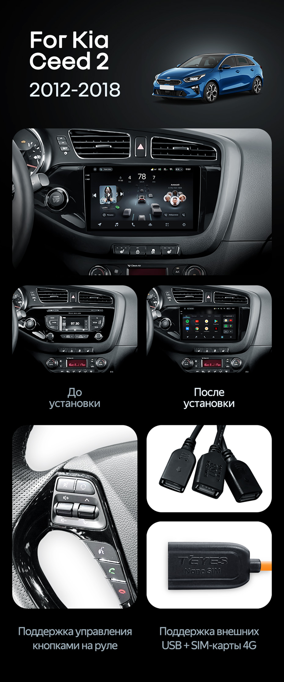 Штатная магнитола Teyes CC4 8/128 Kia Ceed 2 JD (2012-2018) - купить всего за 48 120 руб. в интернет-магазине в Ижевске Teyes.com.ru. ✓ Самый лучший выбор мультимедиа ✓ Лучшая замена штатному ГУ ✓ Тел. +7 (800) 775-31-74