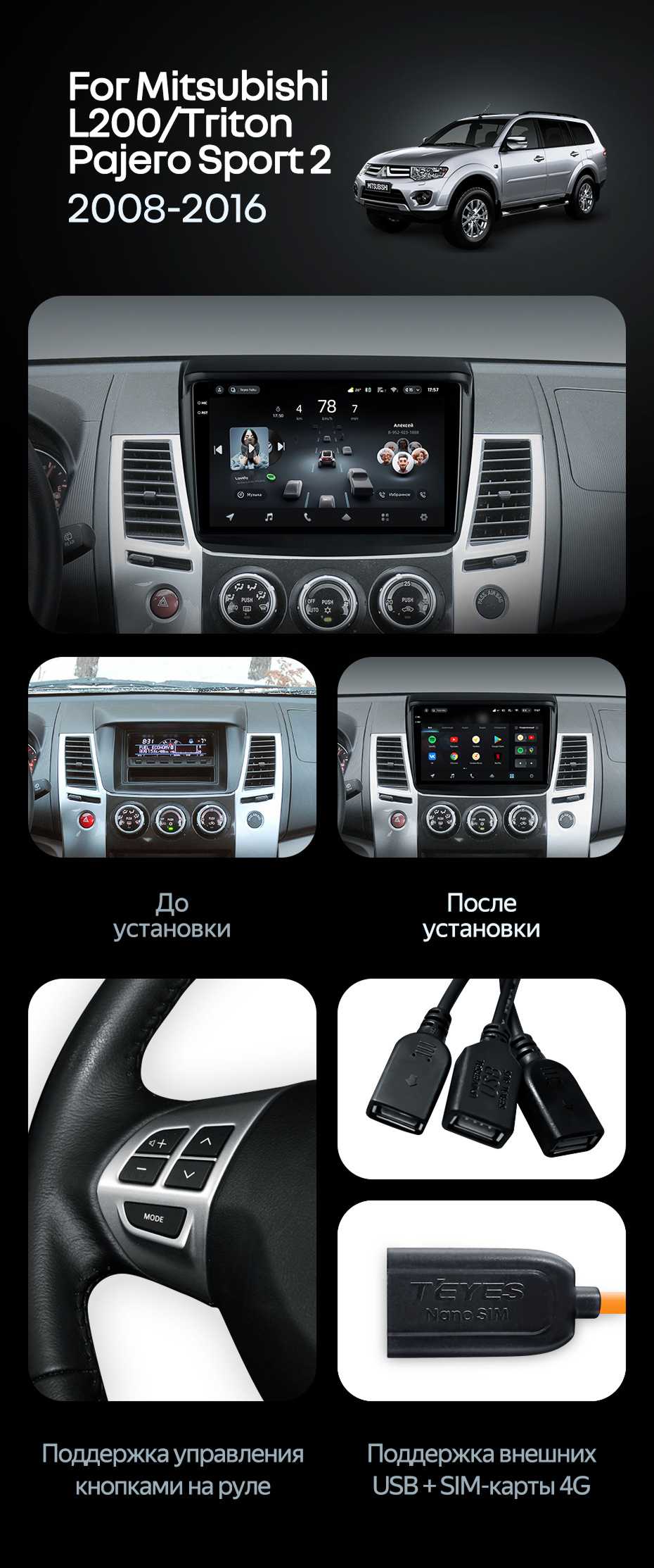 Штатная магнитола Teyes CC4 Pro 12/256 Mitsubishi L200 (2008-2016) - купить всего за 68 350 руб. в интернет-магазине в Ижевске Teyes.com.ru. ✓ Самый лучший выбор мультимедиа ✓ Лучшая замена штатному ГУ ✓ Тел. +7 (800) 775-31-74