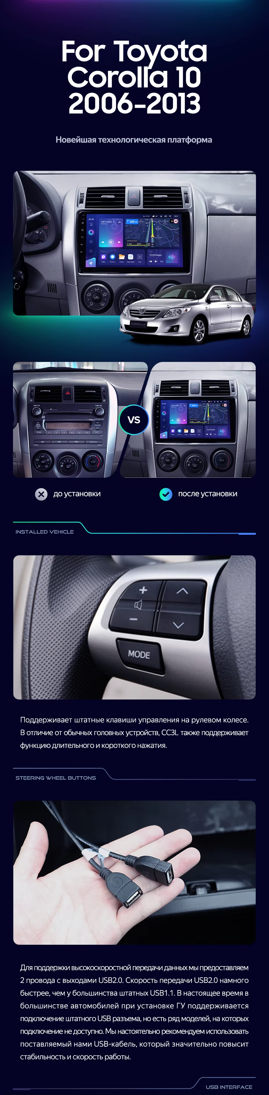 Штатная магнитола Teyes CC4 Pro 12/256 Toyota Corolla 10 E140 E150 (2006-2013) Тип-B - купить всего за 69 190 руб. в интернет-магазине в Ижевске Teyes.com.ru. ✓ Самый лучший выбор мультимедиа ✓ Лучшая замена штатному ГУ ✓ Тел. +7 (800) 775-31-74