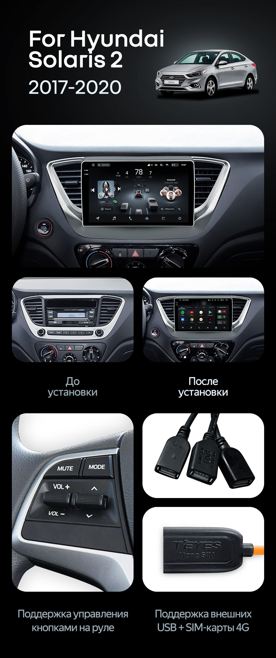 Штатная магнитола Teyes CC4 Pro 8/128 Hyundai Solaris 2 (2017-2020) F1 Тип-A - купить всего за 58 080 руб. в интернет-магазине в Ижевске Teyes.com.ru. ✓ Самый лучший выбор мультимедиа ✓ Лучшая замена штатному ГУ ✓ Тел. +7 (800) 775-31-74
