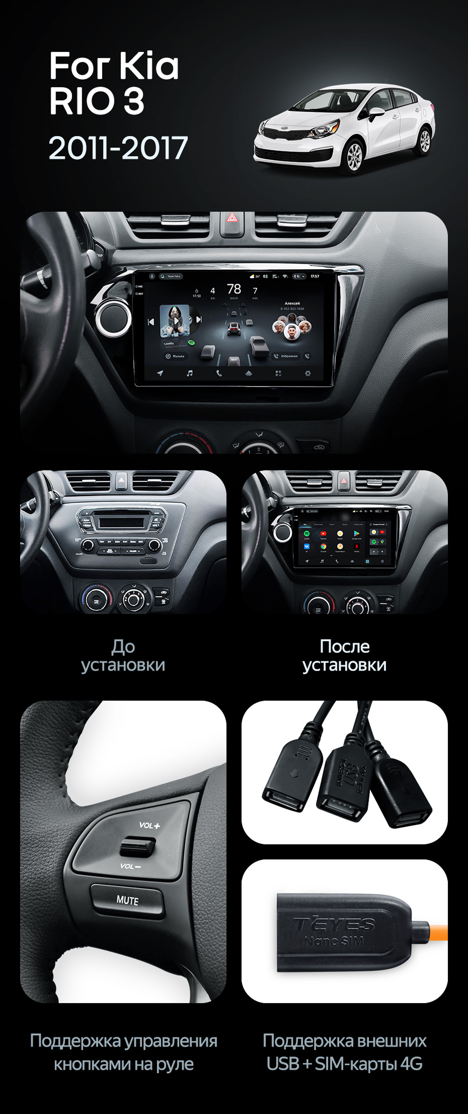 Штатная магнитола Teyes CC4 Pro 8/128 Kia Rio 3 (2011-2017) - купить всего за 57 780 руб. в интернет-магазине в Ижевске Teyes.com.ru. ✓ Самый лучший выбор мультимедиа ✓ Лучшая замена штатному ГУ ✓ Тел. +7 (800) 775-31-74