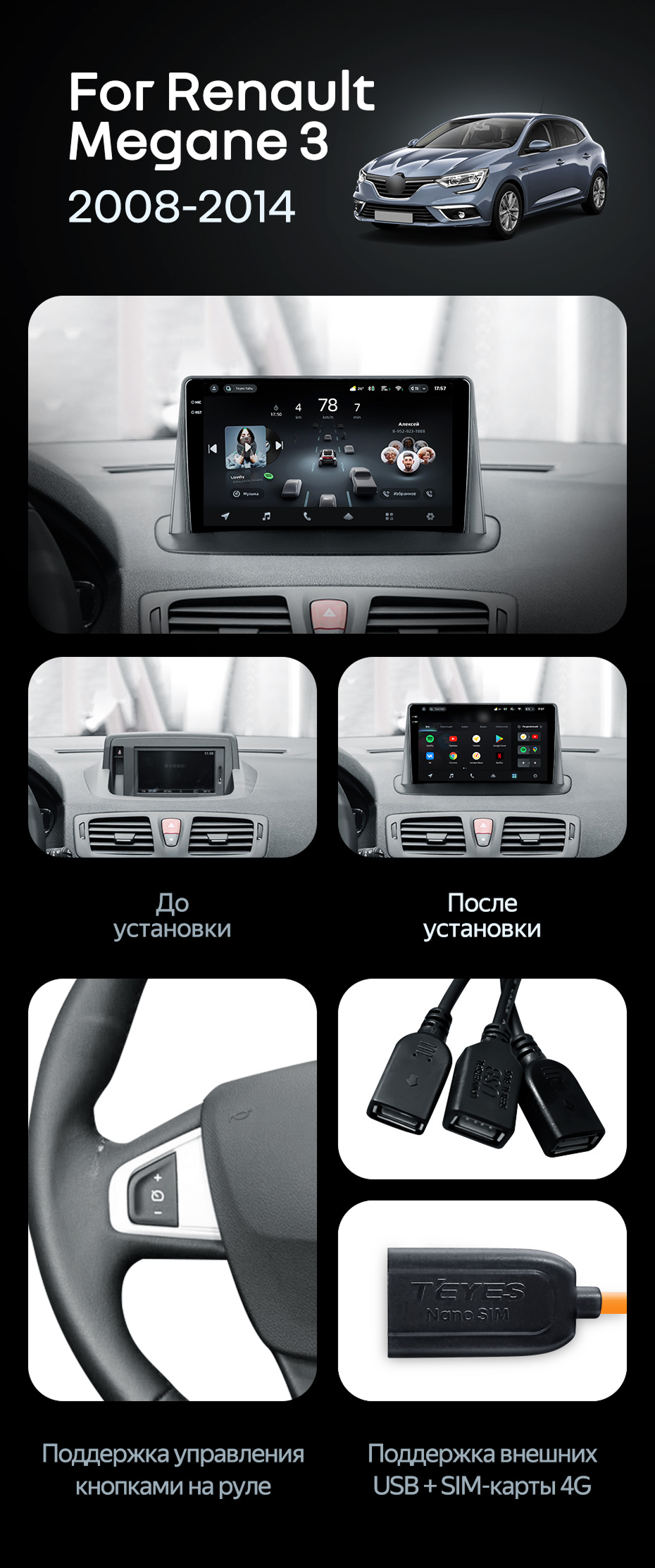 Штатная магнитола Teyes CC4 Pro 8/128 Renault Megane 3 (2008-2014) - купить всего за 60 100 руб. в интернет-магазине в Ижевске Teyes.com.ru. ✓ Самый лучший выбор мультимедиа ✓ Лучшая замена штатному ГУ ✓ Тел. +7 (800) 775-31-74