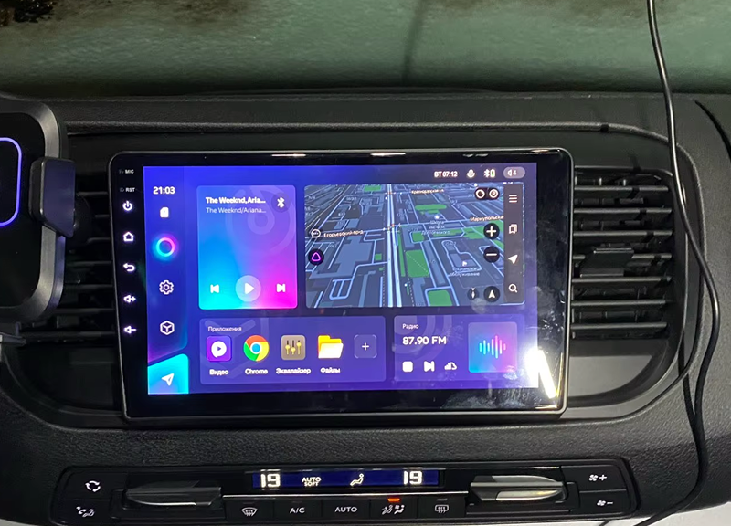Большой сенсорный экран удобен для навигации, мультимедиа и управления функциями автомобиля. Поддерживается подключение камер, интернета 4G и дополнительных аксессуаров.