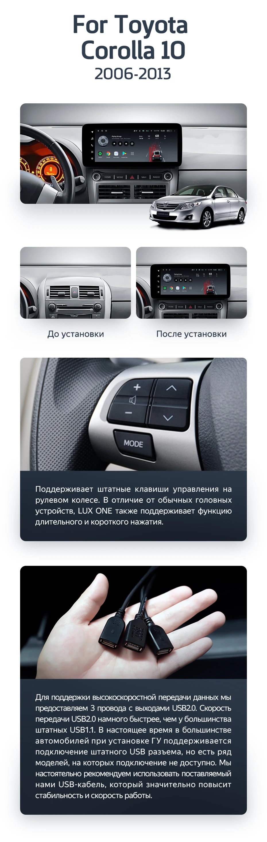 Штатная магнитола Teyes LUX ONE 6/128 Toyota Corolla 10 E140 E150 (2006-2013) - купить всего за 47 900 руб. в интернет-магазине в Ижевске Teyes.com.ru. ✓ Самый лучший выбор мультимедиа ✓ Лучшая замена штатному ГУ ✓ Тел. +7 (800) 775-31-74